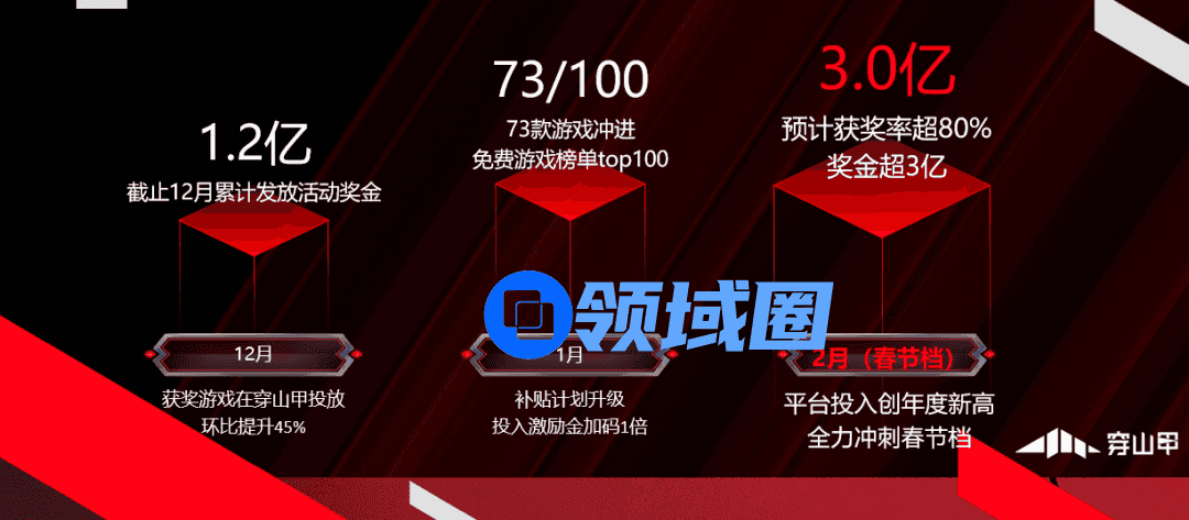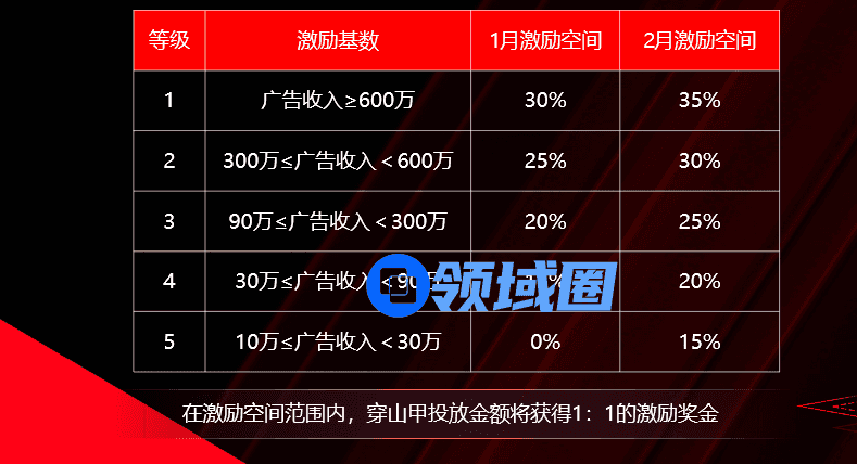 穿山甲平台将投入3亿对游戏开发者进行春节补贴激励,分成奖励比例继续上调5%,这意味着开发者接入穿山甲后,月度广告收益累计最多可以获取185%。