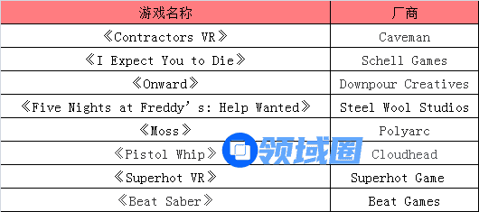 部分收入超百万美元的Oculus VR游戏(游戏茶馆整理)
