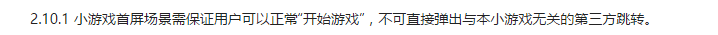 根据最新版微信小游戏运营规范内容,小游戏首屏场景不可直接弹出与本产品无关的第三方跳转,若被发现相关行为,将根据违规次数,对小游戏的跳出能力进行不同程度的限制。