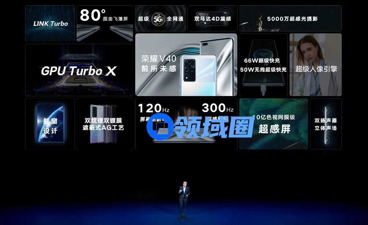 在体验方面,荣耀V40将荣耀多年的创新技术和行业通用芯片平台进行了融合,充分发挥硬件平台的潜力。荣耀V40加入了全新升级的GPU Turbo X图形加速引擎,软硬协同提升图形运算能力,让游戏性能大幅提升。影像方面,荣耀V40搭载旗舰级5000万高清主摄,并延续了专属深度定制的RYYB感光像素矩阵,感光能力提升40%。此外,荣耀V40还配备了66W有线+50W无线双超级快充功能。