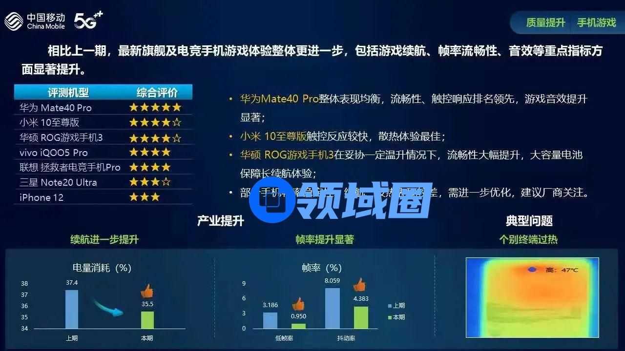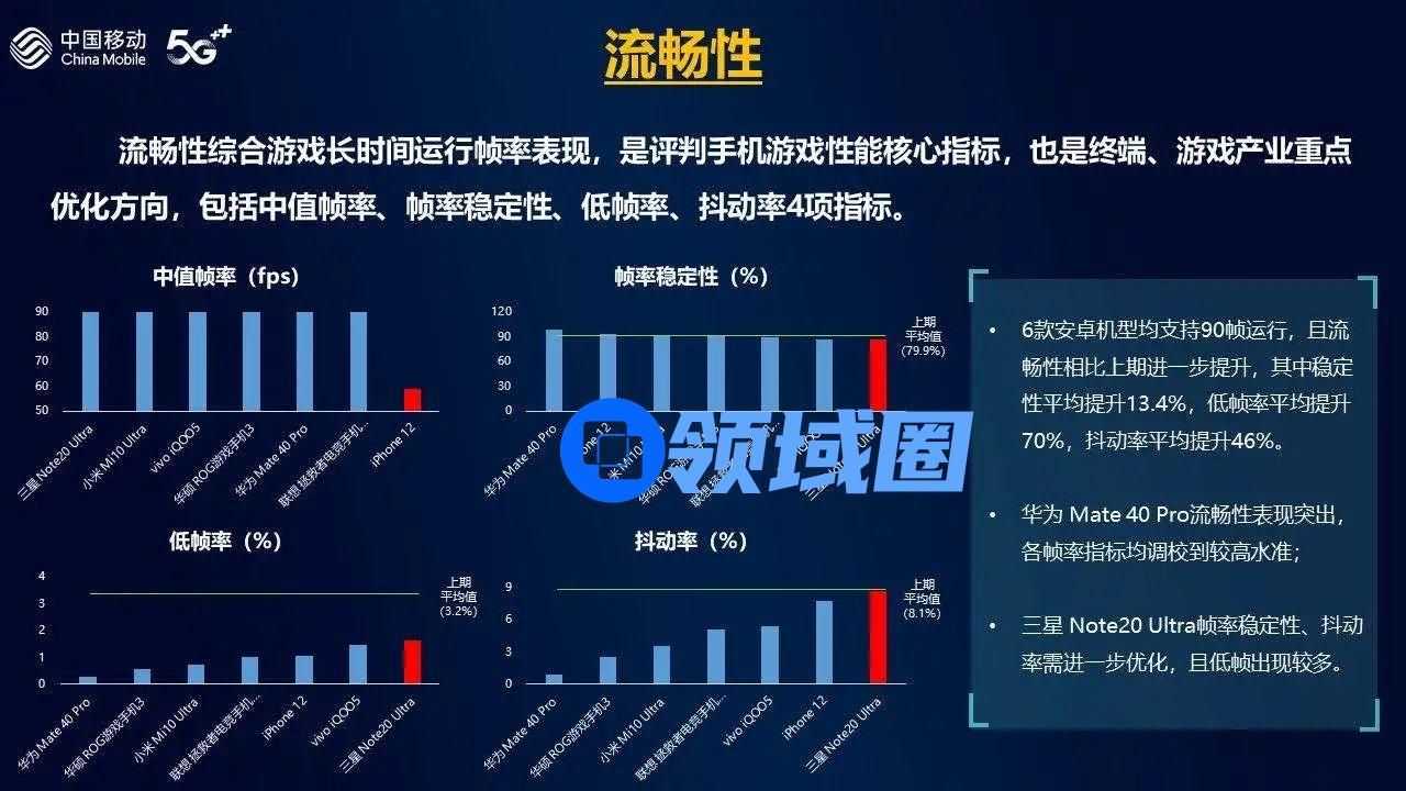 报告从多媒体、续航、发热、反应速度、流畅性等五个维度测试了Mate 40 Pro、华硕ROG游戏手机3、iQOO5、联想拯救者电竞手机Pro、小米Mi 10 Ultra、三星 Note20 Ultra 5G、iPhone 12等7款手机的游戏表现,总体而言,最新旗舰机和电竞手机的游戏整体体验更进一步,包括续航、帧率流畅性、音效等都有显著提升。