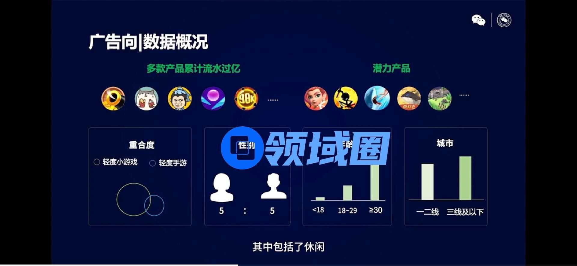 而在以广告变现为主的轻度小游戏方面,玩家用户画像则为男女比例大体一致,30岁以上用户占比大,三线及以下的城市用户占比稍高。从影响轻度产品流水的三个因素,也就是DAU、eCPM和单用户曝光频次入手,公开课嘉宾提出影响eCPM的最主要的则是用户画像是否符合广告主需求、广告形态以及季节性等因素。此外,在不影响用户游戏体验的前提下,利用游戏需求合理拓展新的植入场景,提高广告曝光也能够提高最终收益。