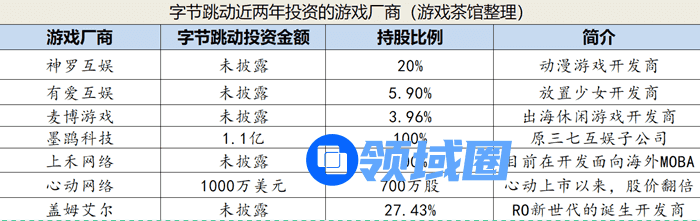 游戏茶馆此前盘点过字节跳动目前在游戏行业的投资情况,现在又可以加入盖姆艾尔了。