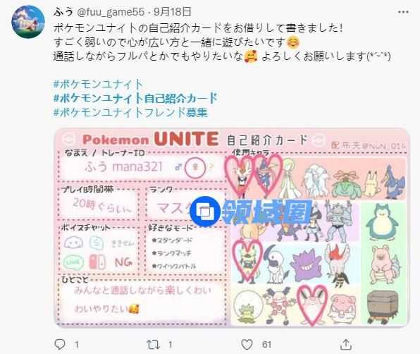 自从 Switch 版在今年7月21日海外上线以来,《宝可梦大集结》的热度可谓节节攀升。不仅在Twitch、YouTube等平台得到了大量关注和KOL的自发传播,在Twitter这样的社交圈,玩家的讨论也没停过,甚至连社恐的日本玩家都掀起一阵自制资料卡求开黑队友的风潮。有的玩家还特意注明了可以接受语音开黑,来提升自己吸引力。