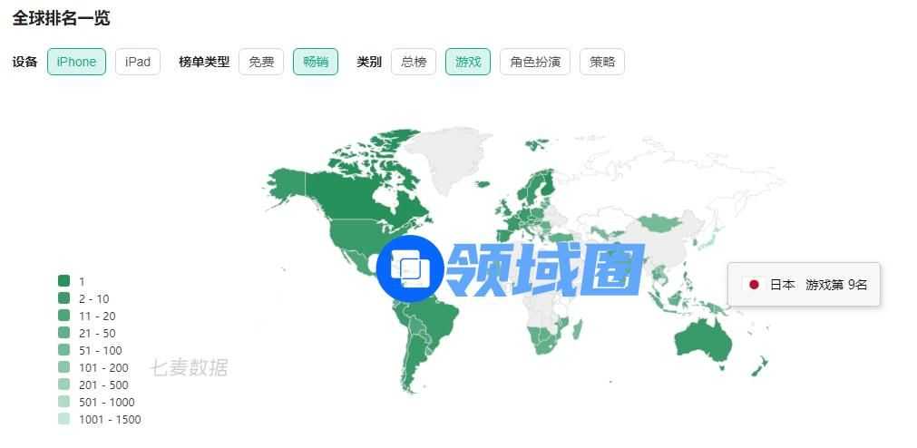 图注:《宝可梦GO》的全球排名靠前的区域恰好覆盖了美日欧