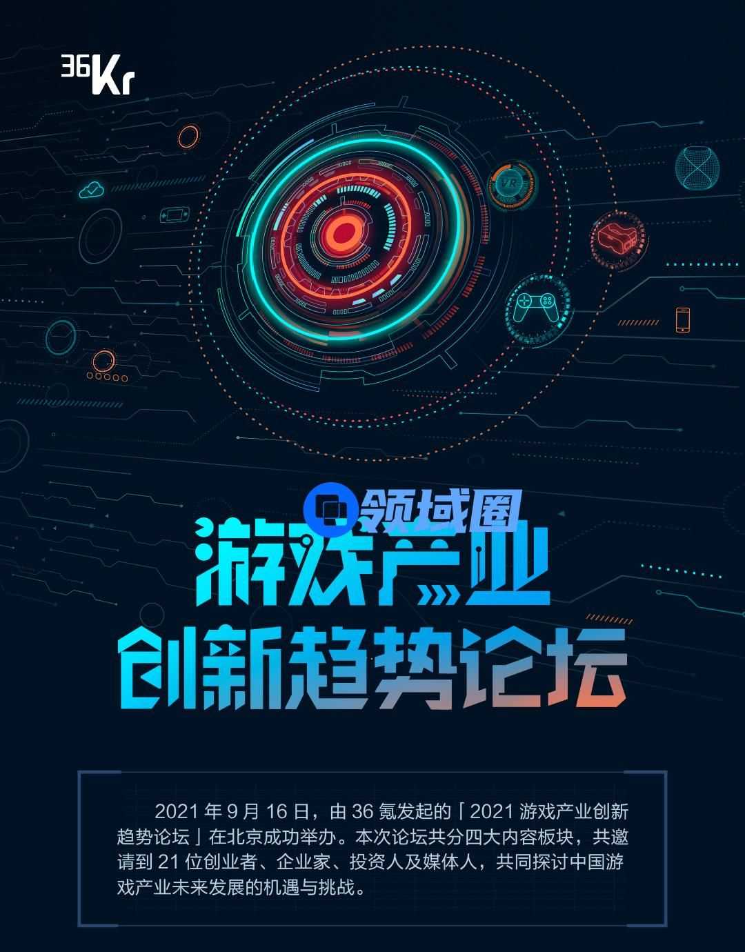 2021年9月16日,由36氪发起的「2021游戏产业创新趋势论坛」在北京成功举办。本次论坛共分四大内容板块,共邀请到21位创业者、企业家、投资人及媒体人,共同探讨中国游戏产业未来发展的机遇与挑战。