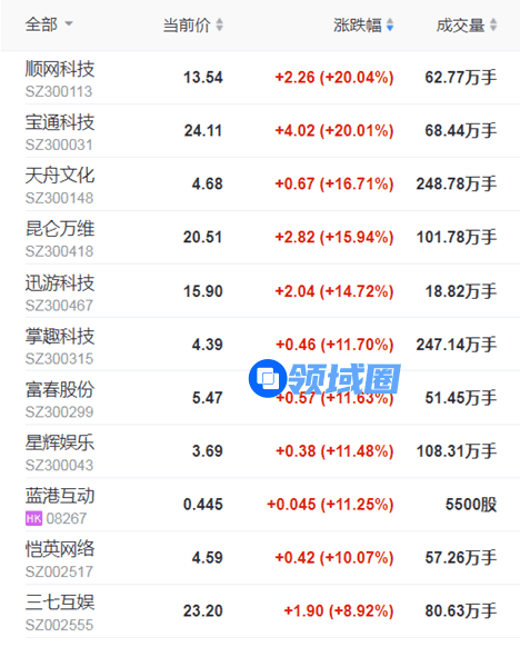 游戏股皆大涨
