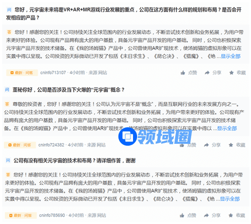 “元宇宙是一个巨大的概念和模式,公司还只是处于初步探索的阶段,触及的概念也相对较浅,对应产品还在持续研发中。目前新游戏上线时间和地区受到诸多因素影响,亦存在不确定性。”