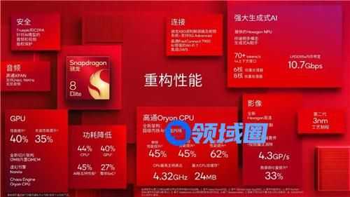 不只是全新命名那么简单,骁龙8至尊版配备了下一代定制高通Oryon CPU,在Adreno GPU、Hexagon NPU、Spectra ISP和骁龙X系列调制解调器之外,补齐了整个平台内部集成定制核心的最后一块拼图,全定制的内核将会使得各类型核心有着无缝的配合从而带来更强的性能。