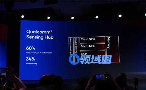 由CPU、GPU、NPU、传感器中枢、内存共同构成的异构计算架构,让高通AI引擎的各个模块能够根据负载提供灵活的性能支撑。其第二代Oryon可以带来了更高的浮点和整数性能,更好地负责处理时延敏感型AI任务,并帮助将AI任务分配到其他更合适的模块上,比如传感器中枢(Qualcomm Sensing Hub)——由2个Micro NPU、2个始终感应ISP、DSP、内存共同组成,整体AI性能提升了多达60%,且内存增加了34%。