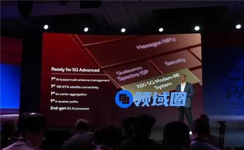 骁龙8至尊版是全球首个支持AI增强5G和Wi-Fi连接的移动平台。其采用骁龙X80 5G调制解调器及射频系统,首个支持下行6载波聚合、首个支持6个Rx接收器路径、首个支持AI/5G-A融合、首个支持AI多天线管理、首个支持CPE AI增强通信、首个支持NB-NTN(非地面网络)卫星通信。