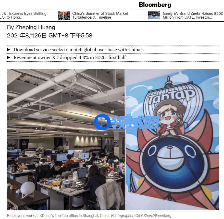 即使亏损,心动作为国内新兴势力,其独特的商业模式也吸引着海外投资者的目光。在昨日心动2021半年报放榜后,财经媒体Bloomberg以“TapTap目标是与Google掰腕”为话题,采访了心动CEO黄一孟。