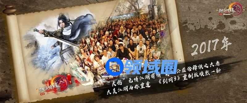 2017年,全门派双人轻功上线,侠士可以与亲友自由相随,同游江湖。台风“天鸽”成为了最特别的8周年记忆,面对严重的天灾,《剑网3》有爱侠士在3天内为珠海捐赠了62万余元,为斗门白蕉镇竖起2000余根电线杆,助力基础设施重建。年底,《剑网3》重制版压轴登场,大美江湖焕然一新,无论是画质表现还是整体性能,都迎来了全方位升级,崭新的《剑网3》江湖就此拉开序幕!