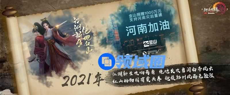 2021年,江湖新生代崛起,吹响反攻号角,群侠共同挑战白帝风云。侠之大者,为国为民,我们的公益行动不停歇!从守护蓝海到南京红山森林动物园有爱共养;从驰援荆州到援助郑州,我们在线下也尽全力践行着侠义之道!