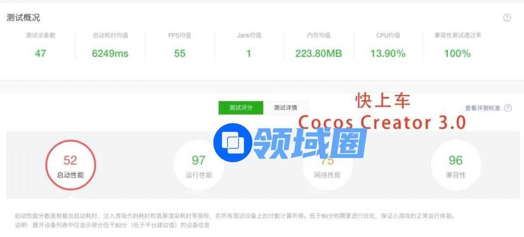 这类画面渲染需要大量算力的技术 Demo 在某种程度上,也验证了 Cocos 引擎性能的提升。事实上,从官方此次披露的多个项目的云测数据可以看出,其启动性能、运行性能、物理性能等都有了显著提升。