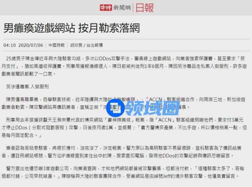 在中国台湾地区的相关报道中,ACCN则是一个台湾犯罪分子与内地黑客勾结敲诈当地企业的组织