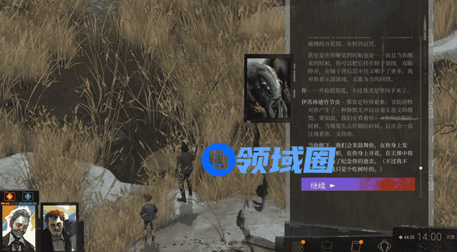 举个例子,在故事最后的小岛上,与巨形竹节虫的对话是许多玩家体验中情绪印象最深的一点。如果玩家在之前的探索过程中接触了所有神秘动物学家的任务,在一次一次诱捕竹节虫的任务中失望而归,不管玩家最初是否相信神秘动物学家和他妻子的“胡言乱语”,似乎都承认了这一神奇事物纯属梦幻泡影。然而在最后的最后,也许连神秘动物学家自己都不相信竹节虫的存在了,主角却在小岛上看到了它。在意识流的对话里,竹节虫纯洁而美好,这似乎是充斥着破碎和绝望的瑞瓦肖中,留存着的希望的种子。至于竹节虫代表着什么,就自由心证了。