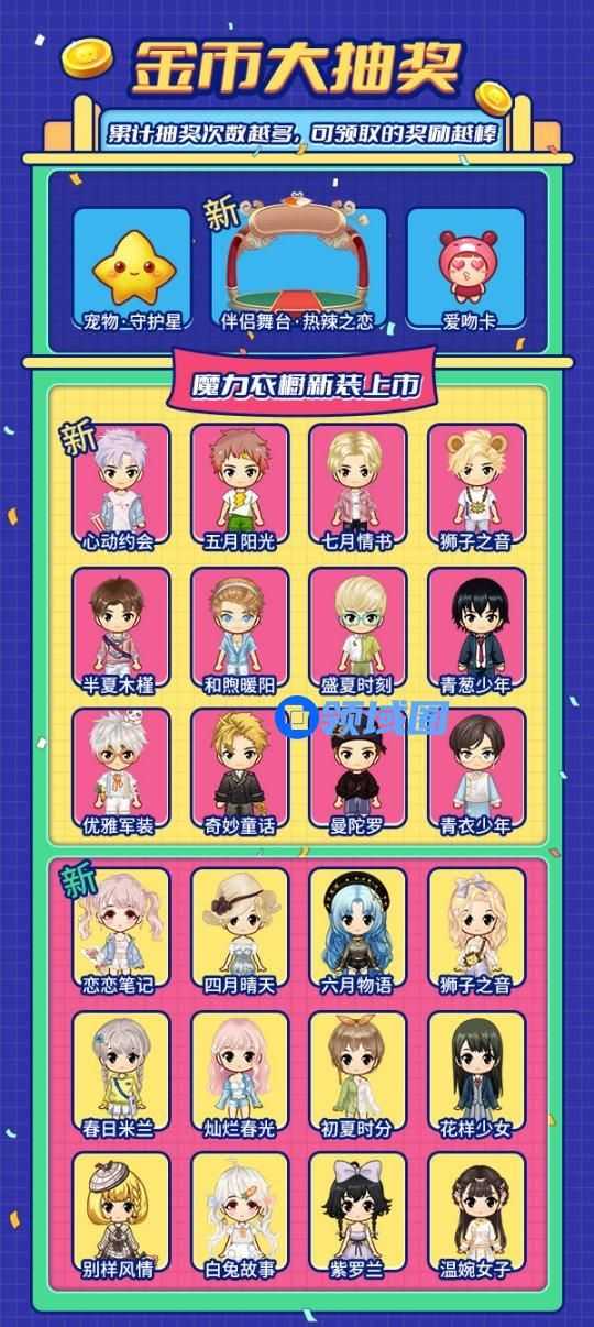 活动期间,每花费200金币即可抽奖1次,根据您的抽奖次数,还能获得额外奖励!“魔力衣橱”再次登场,全新动态套装:心动约会、恋恋笔记等着你哦!
