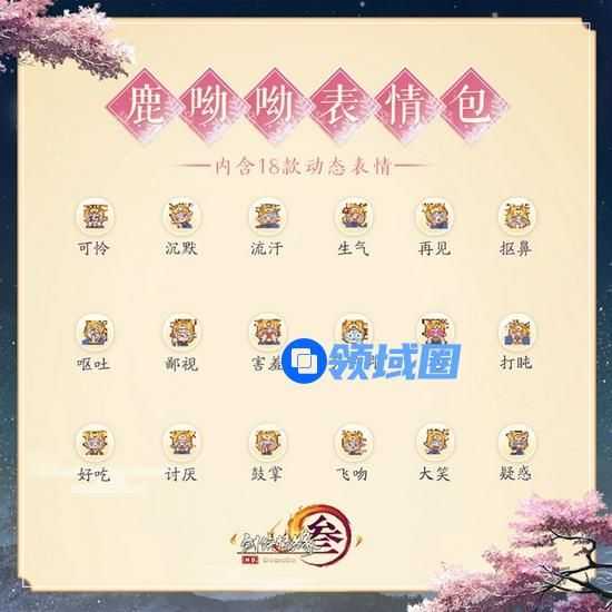 “表情包”作为大唐侠士行走江湖的必备品,今日自然是不会缺席!本次推出“鹿呦呦表情包”的每款小表情都戴有小鹿帽帽,萌趣可爱!表情种类多多,总有一款能表达侠士的心情,快来选购吧!