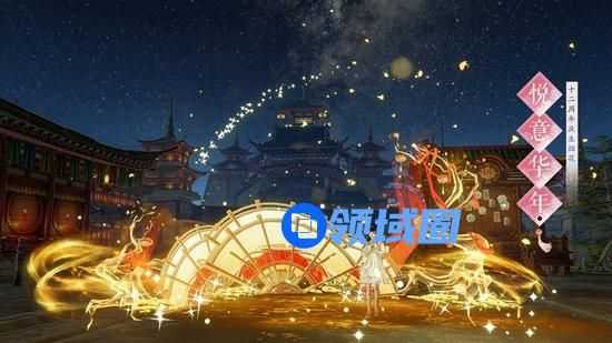 不仅如此,为《剑网3》江湖庆生,本次推出的十二周年庆生烟花“悦意华年”亦是繁美异常!烟香馥郁,箫鼓喧阗,灯火盈门,笙歌迭奏,此乃盛唐!侠士燃放烟花后,只见金扇祥云屏风倏然开启,红绸灯笼缠挂于银杏树上,金黄单扇银杏叶悠然飘飞,随金云星海于身周环绕,绮丽缥缈,将盛世大唐的千种风情、万般繁奢尽情绽放!
