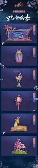 摆灯家具·踏鹿鸣春·衔春:8月19日7:00永久上架,售价2,400通宝。8月19日7:00至8月26日7:00首周限时8折,折后价1,920通宝,为不绑定款。8月26日7:00起恢复原价,为绑定款。可代付,不可用折扣券。