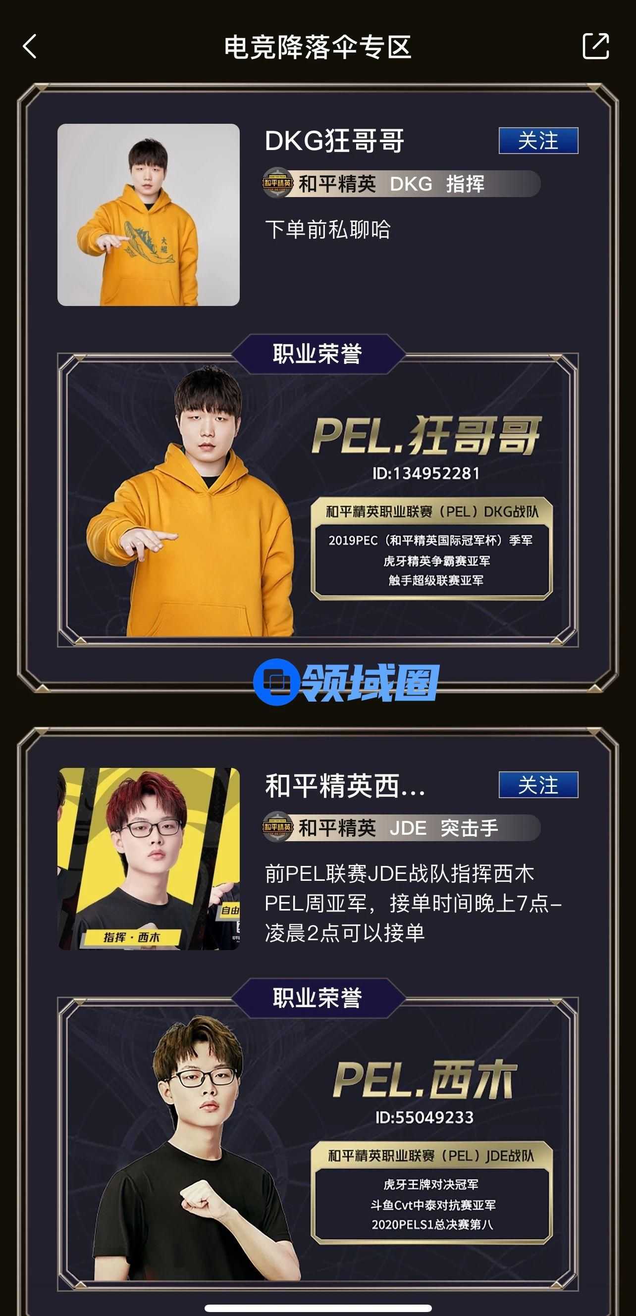 像小段这样被吸引加入“降落伞计划”的职业选手还有很多。除了小段和橙汁,首批入驻降落伞计划的职业选手包括前和平精英职业联赛(PEL)JDE战队西木、前和平精英职业联赛(PEL)DKG战队狂哥哥等30多位顶级联赛退役选手。