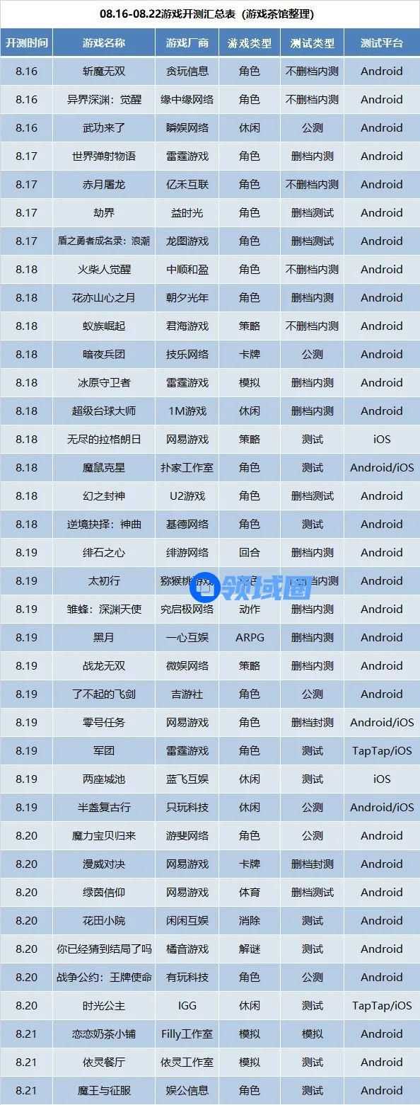 下周即将进行测试的大厂有雷霆、朝夕光年、网易、龙图和IGG等。