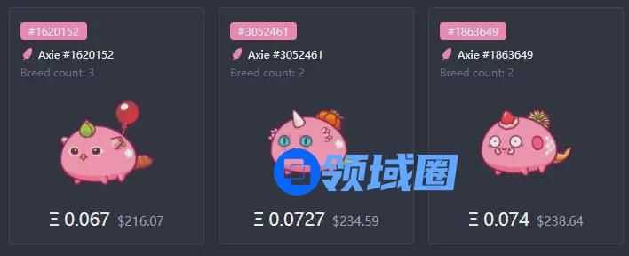 与传统游戏不同,Axie Infinity初始并没有赠送玩家角色,启动游戏所需要的3个角色均需要玩家去交易市场购买,价格普遍在在100~1000美元之间,部分稀有角色的售价则可能会突破2000美元。这意味着玩家若想保持不错的胜率,启动资金至少需要6000~7000元人民币。
