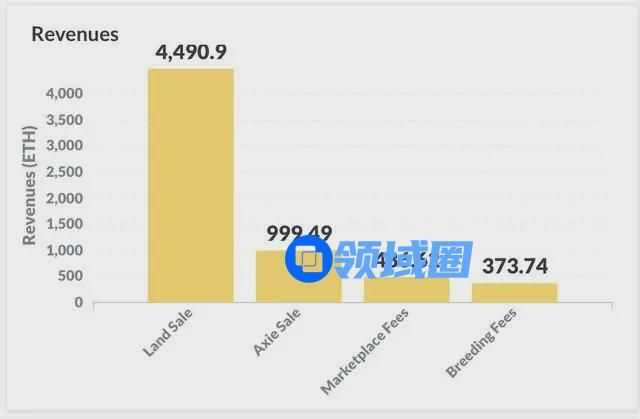据相关统计数据显示,在Axie Infinity通过系统获得的6000 ETH收入中,其中地块销售收入4490.9 ETH,占据总收入的75%。
