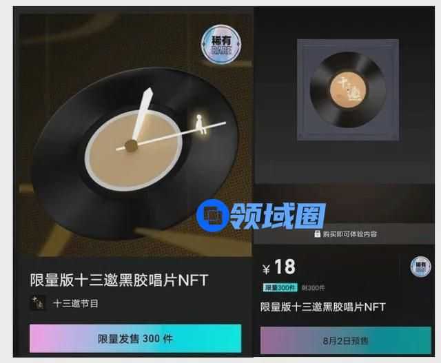 比如在上周一(8月2日),腾讯就瞄准NFT领域发布了国内首个NFT艺术品交易App“幻核”,并推出了首期限量版“十三邀”黑胶唱片NFT,官方售价18元人民币。原本限量300件的黑胶唱片刚上线就被迅速抢购一空,人气可见一斑。