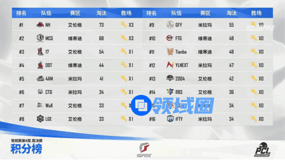 【Krafton Inc.旗下PUBG工作室】乘风破浪,一往无前!由Krafton Inc.旗下PUBG工作室举办的2021年绝地求生冠军联赛(PUBG CHAMPIONS LEAGUE,简称“PCL”)夏季赛常规赛的第四周比赛落下帷幕。上周亚军NH战队本周再度火力全开,周中赛便拿到94个超高淘汰数,周决赛凭借3胜73淘汰的优势夺得周冠军。MCG战队以3胜68淘汰的淘汰数劣势获得周亚军。上周冠军17战队状态不减,以1胜54淘汰的成绩位列第三。