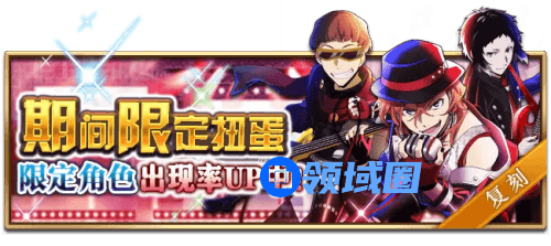 ②阶段上升扭蛋:到达第二阶段必得限定SR角色*1,到达第三阶段必得SSR角色*1,到达第五阶段可获得SSR【狂热的音乐祭】中原中也、 SSR【乐队】梶井基次郎其中一个,到达第六阶段SSR出现率高达1.5倍且不限次数!