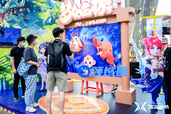 每个展区都有相应的互动游戏和丰富活动。例如在《梦幻西游》展区,玩家进入展台可获得3个紧箍咒套圈圈以用来套取神兽娃娃,套中一次即可通关。之后通过鼓谱敲打大鼓,完成后即可进入下一关,最后玩家与西游神兵进行拍照互通,比出88手势,即可完成全部关卡。每一关卡完成后,都可以加盖专属印章以留作纪念。