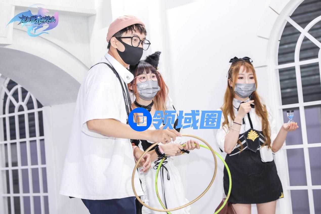 在通过一段玻璃通道后,展台游戏便正式开始。跟随NPC的剧本指引,玩家在女仆伙伴的陪伴下,需要在超过500的展区中进行三个游戏挑战。有意思的是,由于展区周围被事先搭建好的围墙拦住,且同时限制了参与人数,所以实际过程中不太会被外部的视线或环境干扰,整个体验沉浸感十足,甚至在最后一个游戏挑战中,女仆的伙伴将失去大部分视觉,需要由玩家引导她一同穿越由镜子搭建而成的迷宫。