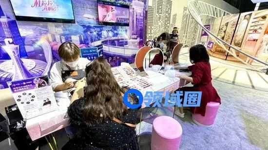 最为独特的当属展台左侧的美甲区。在游戏展会上设置美甲区,这可能还真是友谊时光首创。