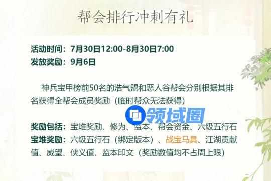 活动八:帮会冲刺竞赛,角逐兵甲50强