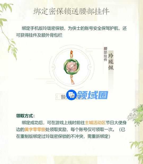 活动十:绑定玲珑密保锁,领挂件背包栏