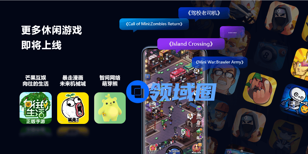 发布会现场,百度游戏公布包括《Island Crossing》 《Call of Mini:Zombies Return》 《Garden》等在内的多款休闲游戏产品,未来将立足精品和全球战略,实现IAA/IAP混合变现与长线运营。此外,百度游戏在休闲产品领域与芒果互娱、暴走漫画、智间网络等公司达成合作,储备有“向往的生活”“未来机器城”“萌芽熊”等知名IP改编游戏。