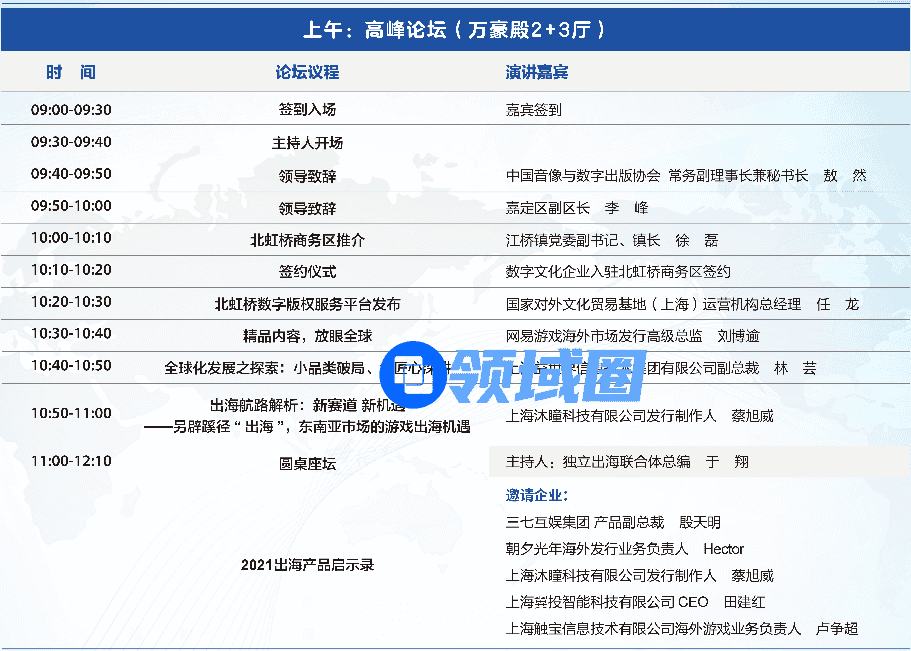由中国音像与数字出版协会、上海虹桥商务区管理委员会指导,中国音数协游戏工委 、 国家对外文化贸易基地(上海)、上海市文化创意产业促进会主办,上海市嘉定区江桥镇人民政府、国家对外文化贸易基地(上海)北虹桥创新中心承办,上海江桥经济发展有限公司、 上海恩友知识产权服务有限公司协办,上海益世界信息技术集团有限公司共同合作的2021国际游戏商务大会将于7月28日全天在上海虹桥万豪酒店举办。