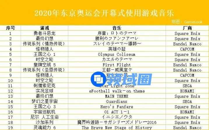 不难发现,这些配乐都是出自SE、卡普空、世嘉、科乐美、万代南梦宫旗下的最具有代表性的作品,包括《勇者斗恶龙》、《最终幻想》、《王国之心》、《怪物猎人》、《实况足球》等19款游戏音乐。