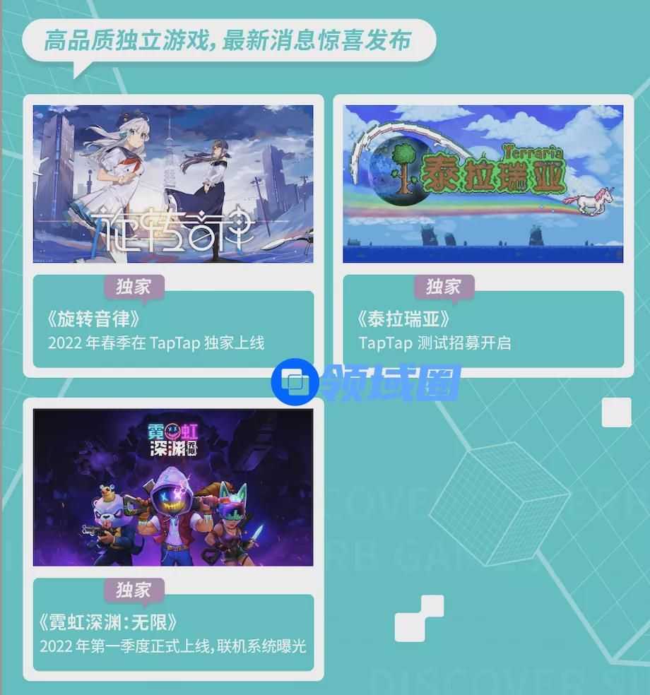 在 TapTap游戏发布会上自然少不了独立游戏的身影。不少独立游戏作为首发在前文已经盘点过,还有一些独立游戏之前已经与玩家见面,但仍未正式上线,此次也带来了新消息。其中就有呼声颇高的《泰拉瑞亚》宣布在TapTap开启测试招募,测试期斩获许多玩家喜爱的音游《旋转音律》宣布将于2022年春季在TapTap独家上线。开启过首轮测试的横版动作roguelike手游《霓虹深渊:无限》也亮相了发布会。制作人玄衣在发布会中摘下戴了很久的熊猫头套,严谨且详实的介绍了关于他们如何挑战将游戏进行移植适配、增添新内容的历程,并正式公布了《霓虹深渊:无限》手游版将于 2022 年第一季度正式上线,且上线版本将有联机功能。