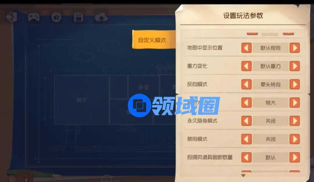 如果说对地图的编辑,表征的是带有全局意识的创意比拼。那么,“玩吧”所提供的玩法编辑,则是着眼于细节处对玩法机制进行奇趣的改造,呈现出的效果更令人上头。在该模式下,玩家可以对角色基础属性、游戏流程内容、道具刷新数量、游戏基础规则等内容进行调整。比如,玩家可以开启“永久隐身”,来一场悄无声息的竞技;又或者打开“反向模式”,在晕头转向中完成一次颠覆性的比拼。