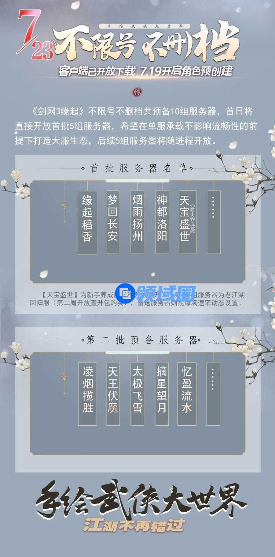 手绘武侠大世界即将呈现,《剑网3缘起》不限号不删档客户端现已开放预下载!不限号不删档首日直接开放首批5组服务器,希望在单服承载不影响流畅性的前提下打造大服生态,后续服务器将随进程开放!
