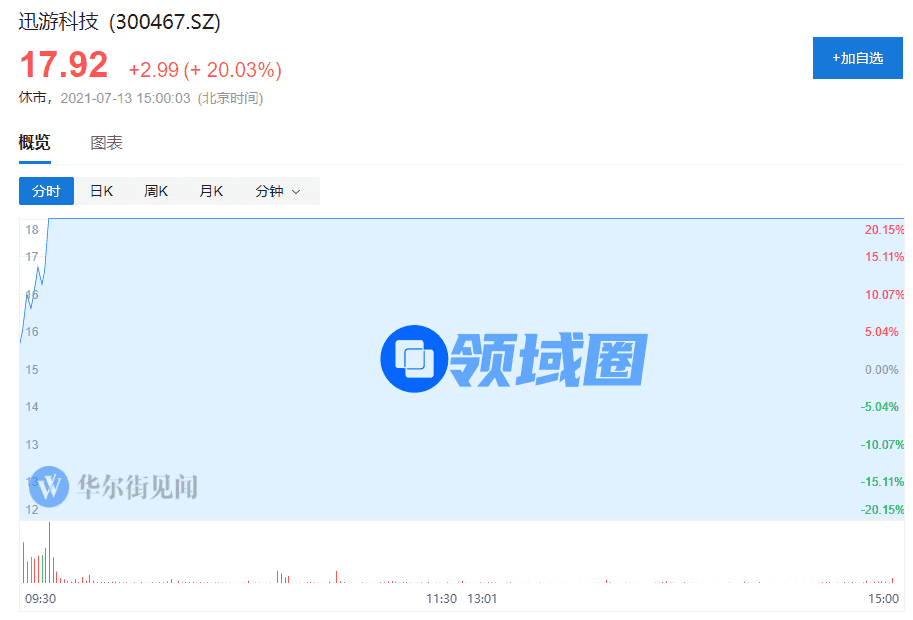 7月13日,游戏板块大涨,迅游科技、中青宝、任子行等个股20%涨停,凯撒文化、盛天网络等多股大涨。