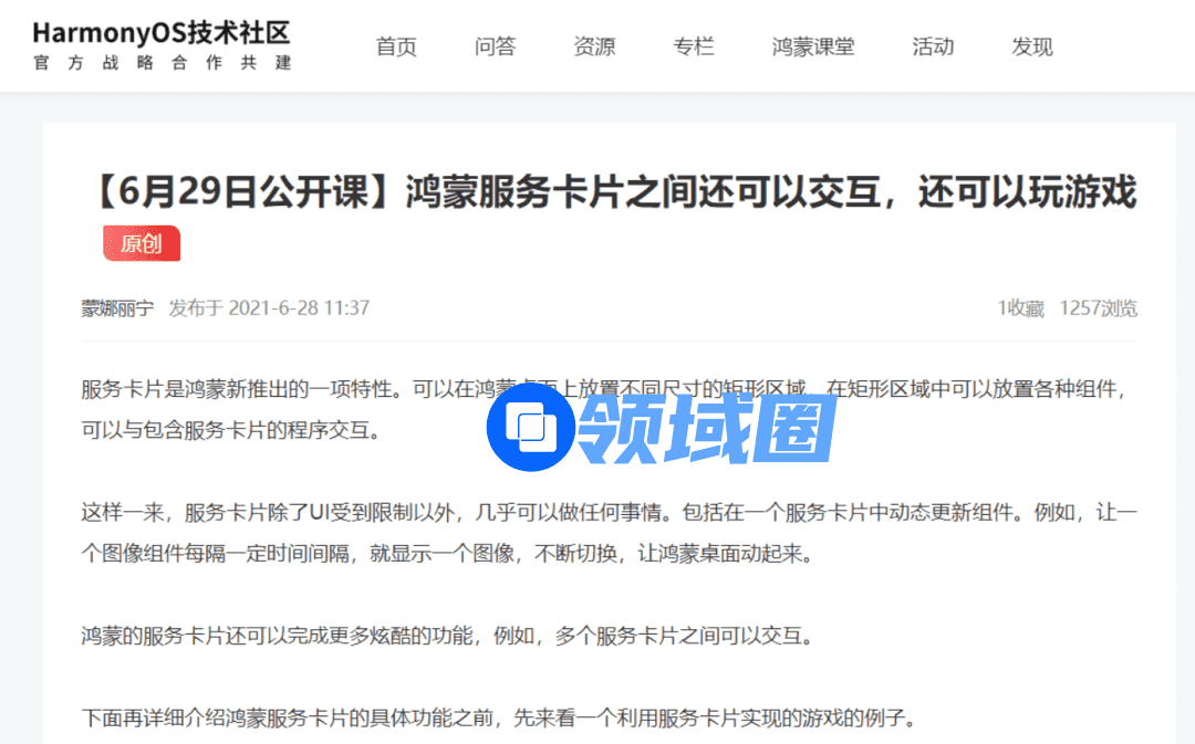在HarmonyOS 技术社区中,一条关于基于服务卡片进行游戏开发的帖子中,提到如何利用服务卡片实现一款类似连连看的游戏,其中涉及到了多个服务卡片之间的交互。
