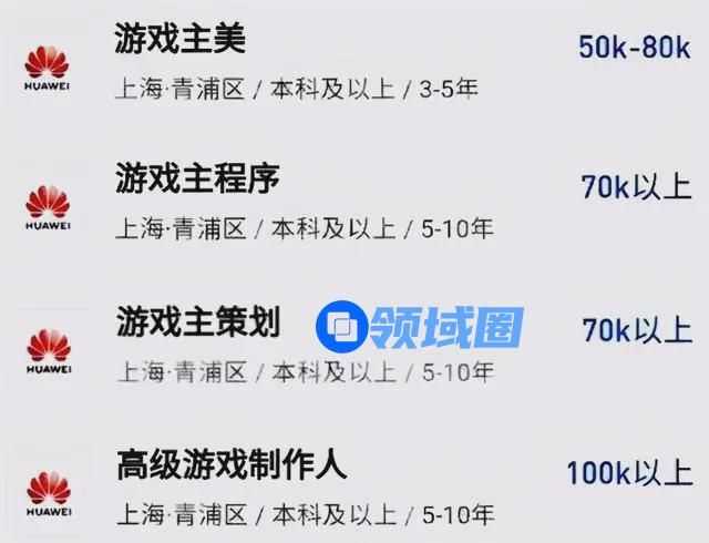 除了上述游戏合作之外,华为还高薪招聘游戏制作人。