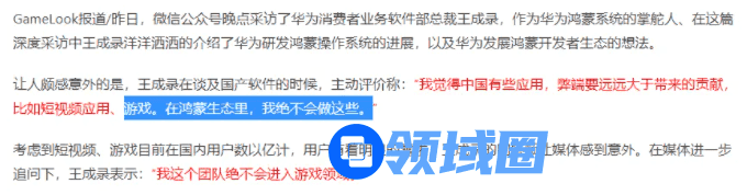 值得一提的是,华为消费者业务软件部总裁、鸿蒙操作系统负责人王成录在一次采访中曾明确表示,“我觉得中国有些应用,弊端要远远大于带来的贡献,比如短视频应用、游戏。在鸿蒙生态里,我绝不会做这些。”