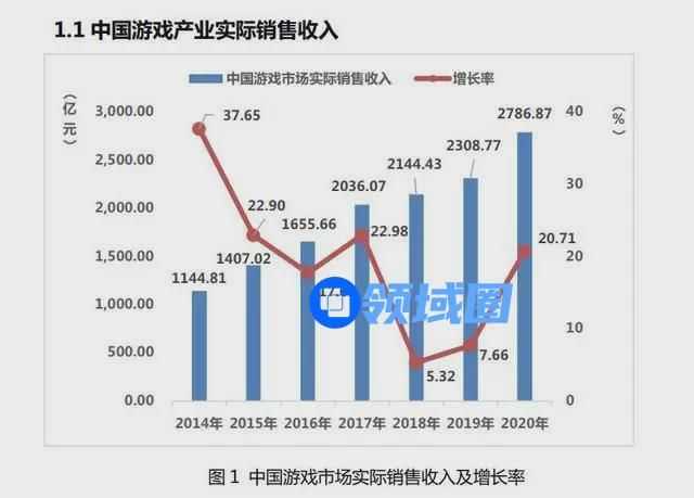 《2020年中国游戏产业报告》显示,2020 年中国游戏用户规模逾 6.6 亿人,同比增长 3.7%;中国游戏市场实际销售收入 2786.87 亿元,同比增长 20.71%。