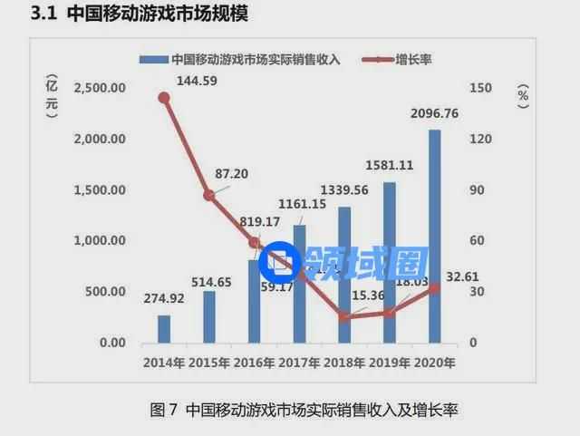 其中,移动游戏市场实际销售收入 2096.76 亿元,比 2019 年增加了 515.65 亿元,同比增长 32.6%。