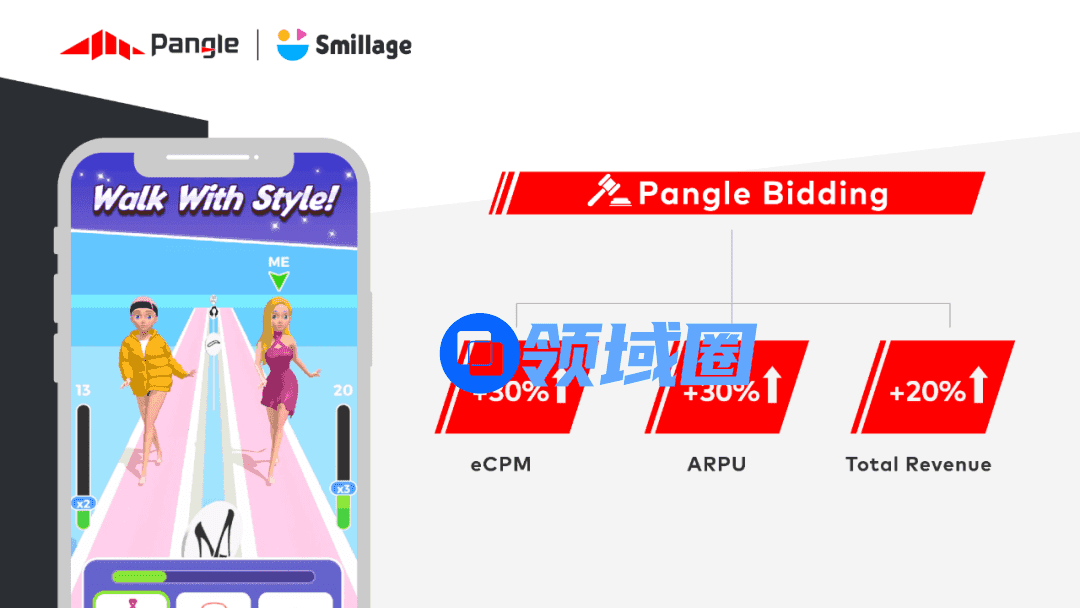 而作为深耕亚太市场的变现与增长的平台,Pangle拥有独家TikTok For Business的强竞争力的预算资源优势,因此正在寻求做强游戏变现能力,提升LTV的解决方案的Smillage,选择了与Pangle进行合作。在合作中,Smillage 再三分析包括用户平均会话时长、游戏启动次数及不同等级用户的停留时长等在内的游戏与玩家数据,并设计多组广告变现策略进行 AB 测试,找到了广告变现与用户体验之间的最佳平衡点。合作也为 Smillage 的变现贡献 30% 的收益。